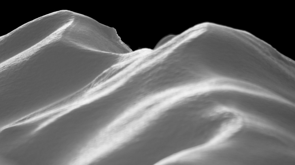 At the end of the valley farthest from the lodge I went poking around and found a half buried solid track. I was able to ride back to Adam and Chris. This was fantastic, what a bit of luck. All three of us walked the next series of hills coming out of the valley.