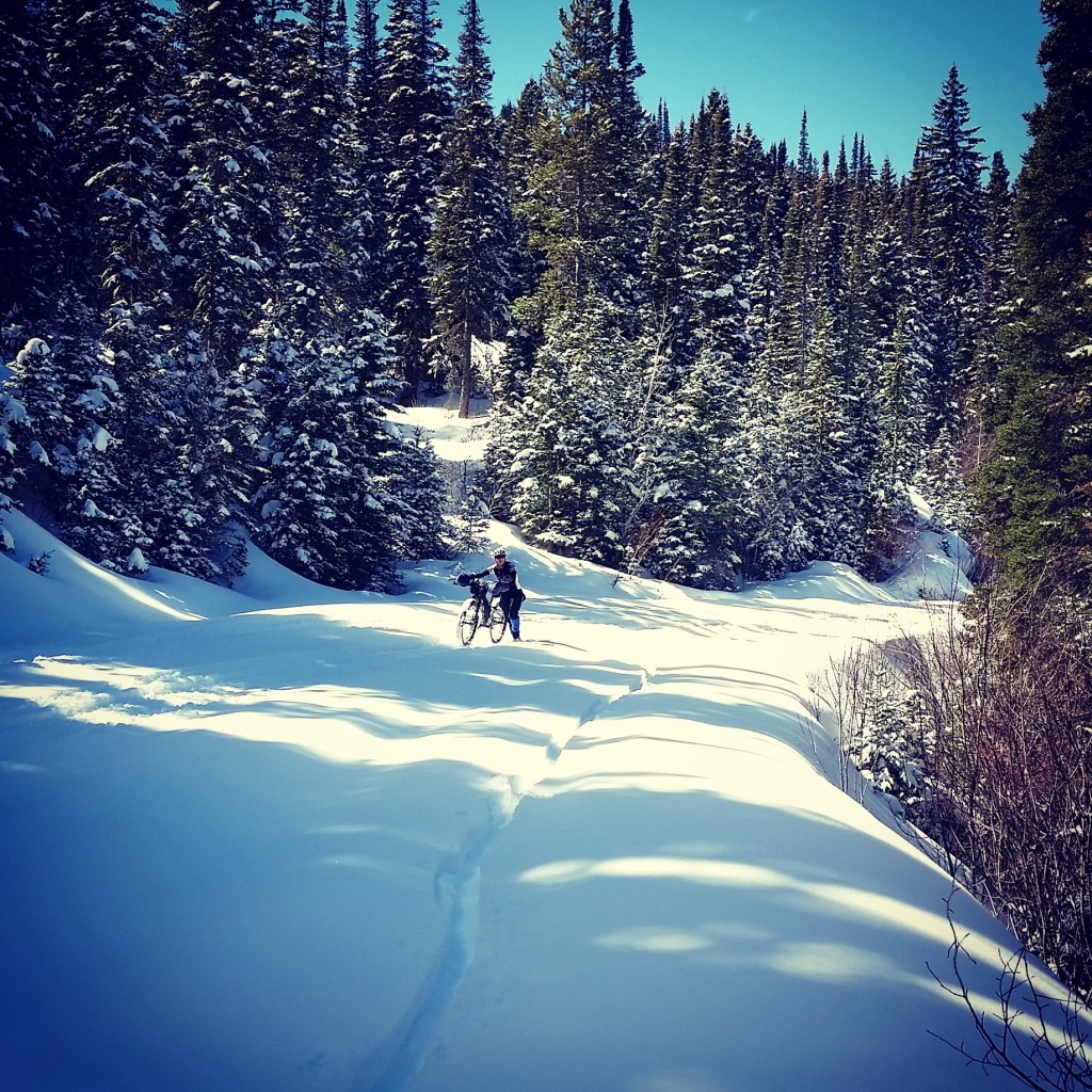 - 2016: FatPacking to Little Bear Cabin – I was a little unsettled before we arrived at the parking area because Bozeman had survived 3 major snowfalls since we were there last. We had done a scout trip on a Wednesday Night Adventure. And even then going was tough due to the lack of snow machine traffic. Heavy powder is tough to push through…