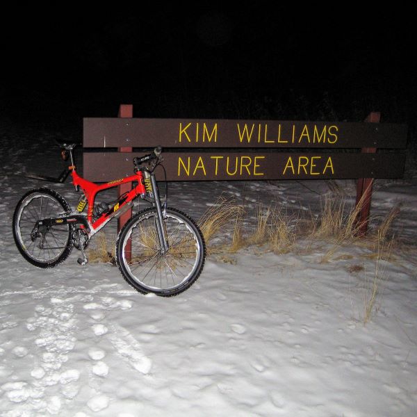 Finally managed an official ride, but only reached the end of Kim Williams Trail. Recent rains formed a crust on the snow, over a foot deep – tough to pedal through. This bike would be great on snowmobile trails. Anyone know any? Wonder what Paul’s up to now?