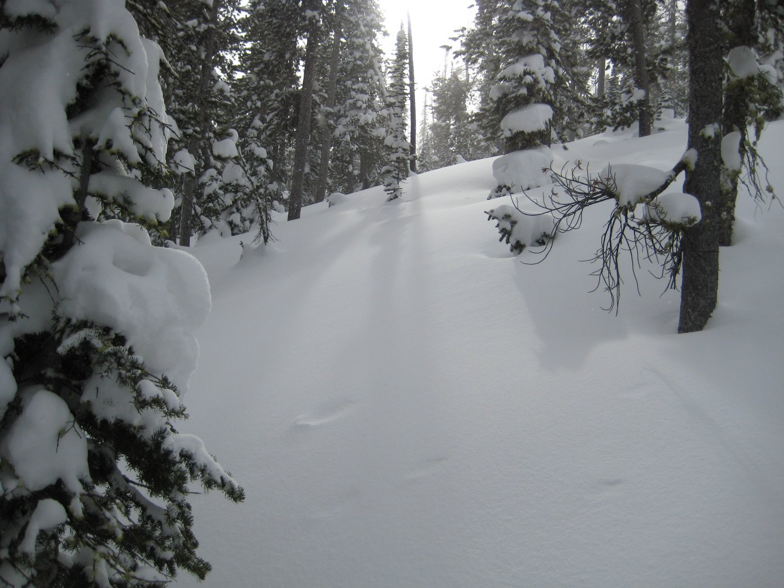 The sun welcomes us to the powder on the hillside behind the cabin