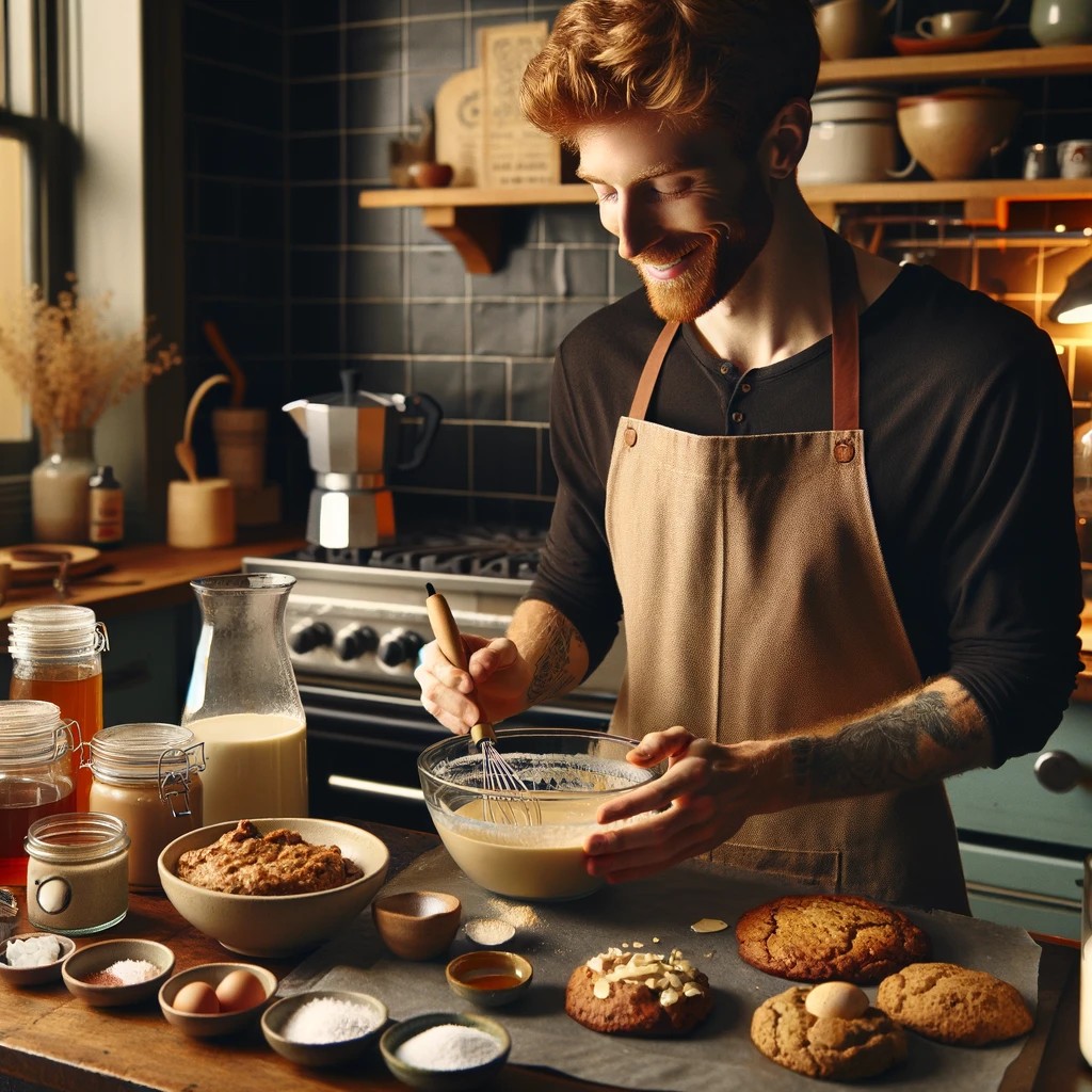 I brewed some decaf (still good, made with my stove-top espresso maker). I took out some nut milk for the brew and found my recipe: almond butter, arrowroot, sea salt (Brad Keys style), an egg, honey, and said nut milk. I stirred it all together and folded in some blueberries.