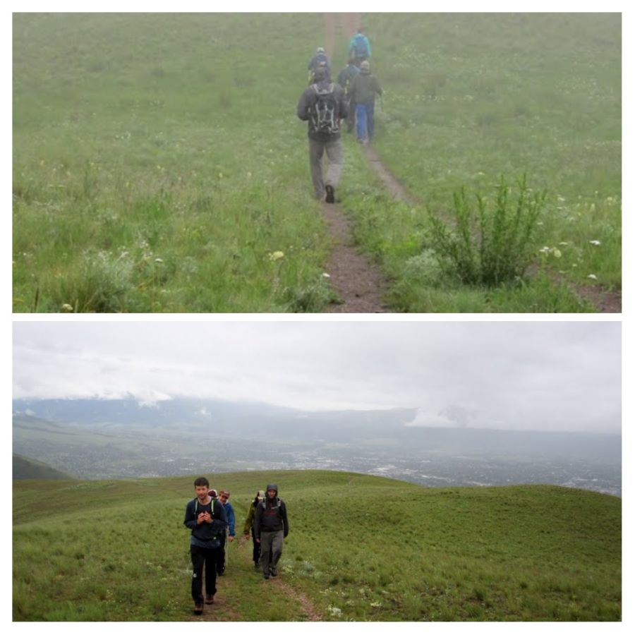 As we hiked, many were glued to their cell phones, longing for the warmth of indoors. But the trail had other plans. Wet grass soaked us through, making every step sound like ‘squish, squash’.