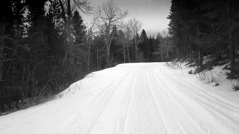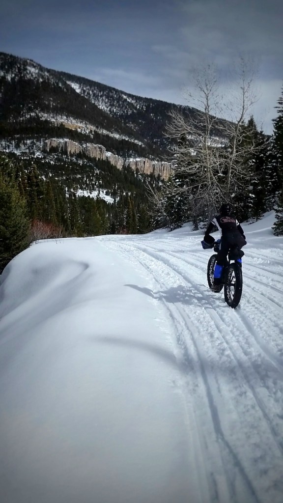 In the winter the route is groomed snowmobile and by groomed I mean as wide as a highway. But that is not the best part. The best part is that this route climbs steady into some really beautiful terrain. I saw future ski runs and awesome looking cliff bands skirting Wheeler Mountain. Soon though my intervals complete it was time to turn around. That is when things got exciting.