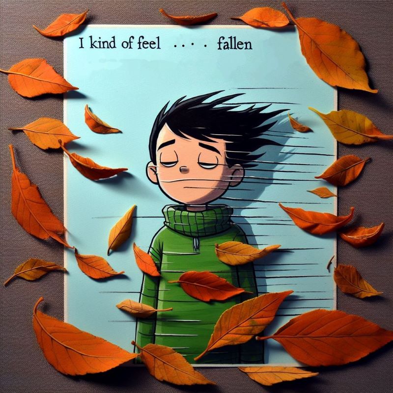 I can’t help but liken myself to a fallen leaf, detached and at the mercy of the wind’s whims. There’s a poignant beauty in it, though. Just like the leaf, I know I’m on the brink of a new adventure, waiting for the winds of change to sweep me off again. Yet, in this moment, I’m static, grounded, “fallen.”