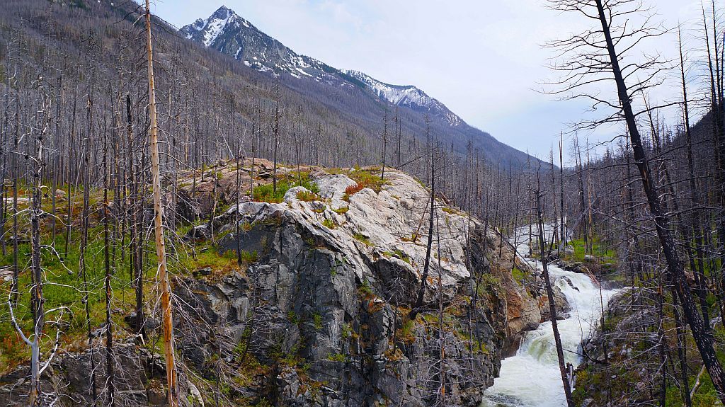 As the canyon narrowed our conversation broke off as if we needed extra brain-power to concentrate on the trail. It climbed briefly and finally come to a vantage point. It was a beautiful scene. Raging water over moss-covered rocks. Simply gorgeous,