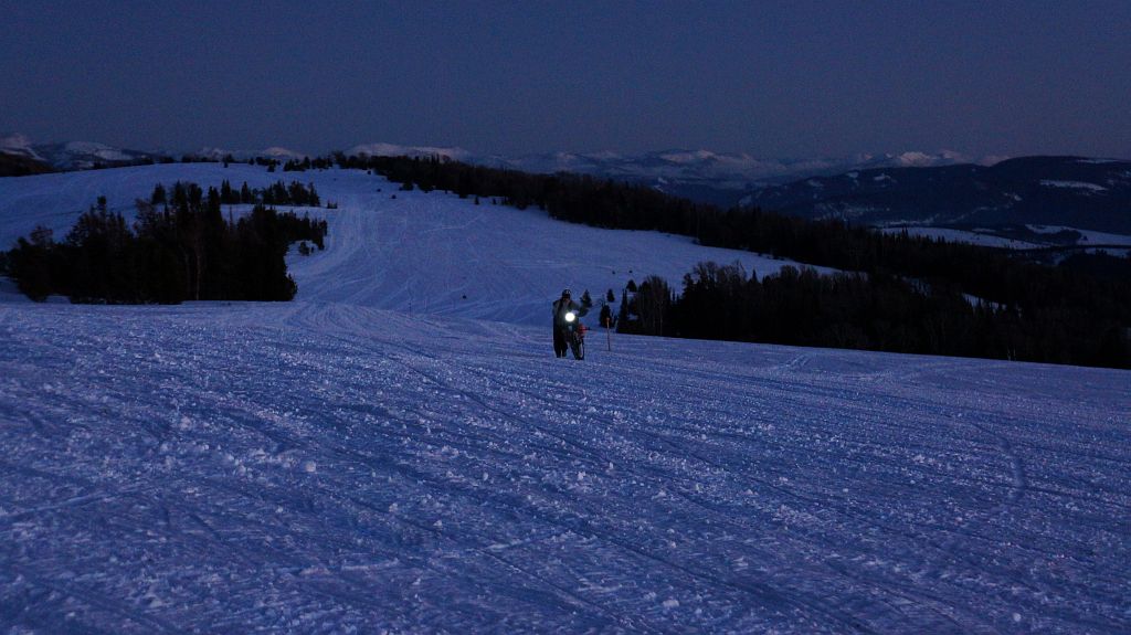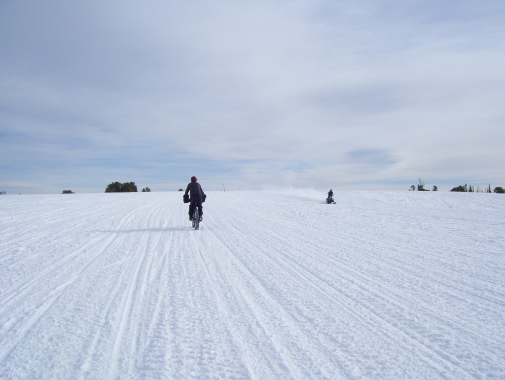 At 7.5 miles into our journey I was waiting for my partner Mo at the top of a steeper section that I had just climbed. Two individuals approached me from the Southwest on snowmobiles. They did not introduce themselves as park officials but I could tell they were by the uniforms they were wearing. At first one of the individuals was extremely interested in my bicycle. he seemed genuinely excited to see a fat bicycle. As I was showing him some of the details and why my bicycle was designed for winter travel when the second person cut in. ‘You know you are not supposed to be here’, is what he said exactly. From that moment on I do not remember the exact words only what I understood. It was extremely hard for me to believe that I was not supposed to be biking on this trail.
