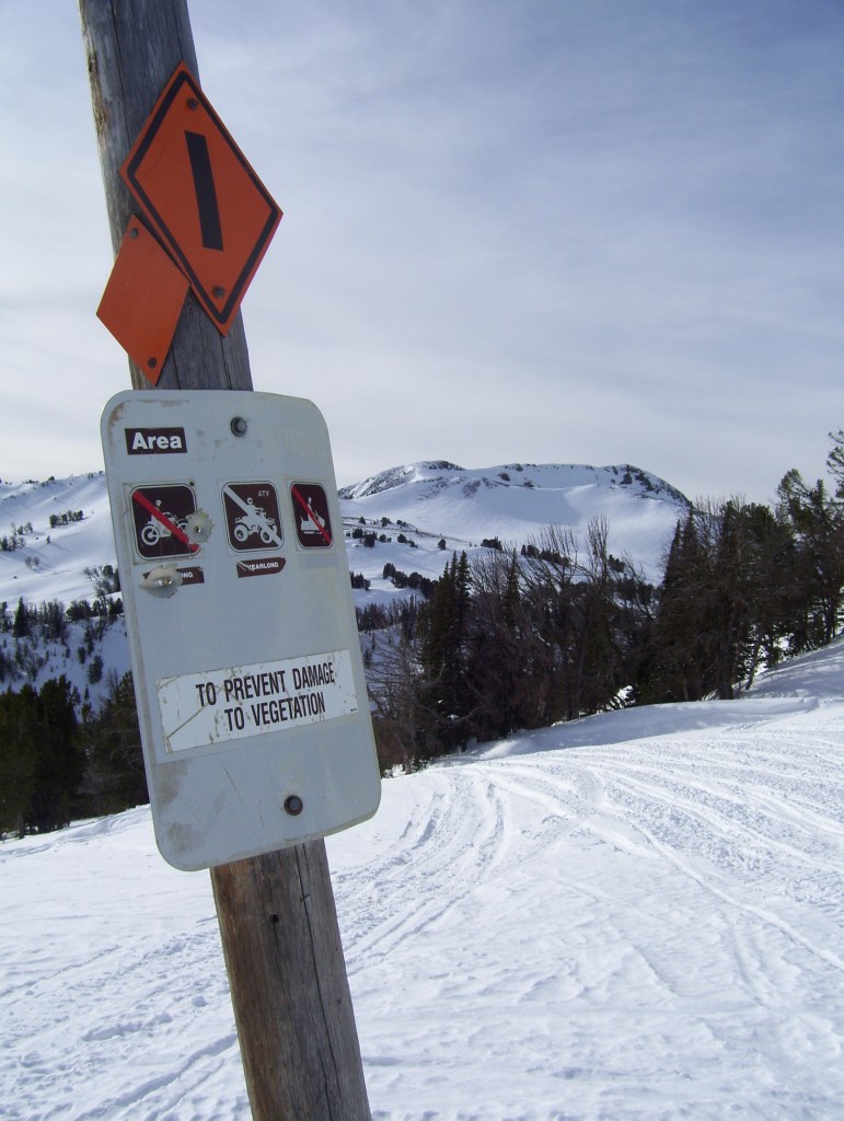 We were told by this FS Official (P. Leddy) about some sort of “Special Order” that indicates no wheeled-vehicle use on groomed snowmobile routes, and that a special order eliminates wheeled-vehicle use from this area. Again this was very confusing information since the maps for over-snow vehicle use indicates we are allowed on this trail and the fact that this is a non-motorized area in the winter-time almost demands that we are the Emphasized, and preferred users. Also, on our entire 14 mile journey there was never any posting regarding the use of bicycles in this area, in fact the only signs only referred to what ‘motorized’ uses were allowed on this ridge, as well as the the sign indicating this area is “non-motorized” in the winter with a single exception being given to snow-machines. I stood there and mentioned all this information without any response from the FS official. During this interaction I also mentioned the fact that there really is no ‘groomed’ trail up here as the entire Ridge is cross-country traveled by snow-machines, I wanted this FS official to point out this “groomed trail” we were getting a ticket for bicycling on because as far as the eye could see and where there were no trees there was a trail, created by extensive snowmobile use over time. Again no response except a comment that if we were 10 feet from where we were we wouldn’t have received the ticket.