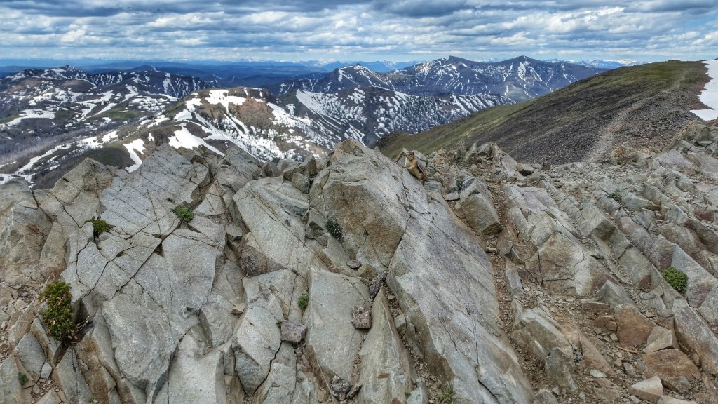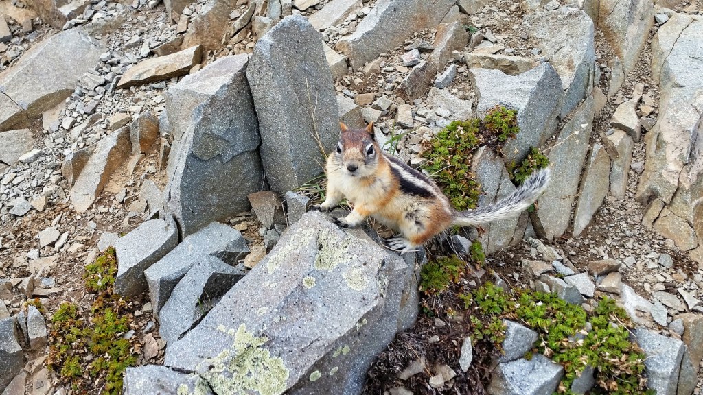 Last summer we climbed Avalanche Peak down yonder in Yellowstone Park. The climb was an arduous one with a ton of verticle. Which is a good thing. The wind was so strong we rested behind cairns. It seems it was the most desolate place. Until a tiny cute creature greeted us. And we dicovered what posers we were up there. This guy was … what wind? Isn’t it a nice sunny day? You got snacks?