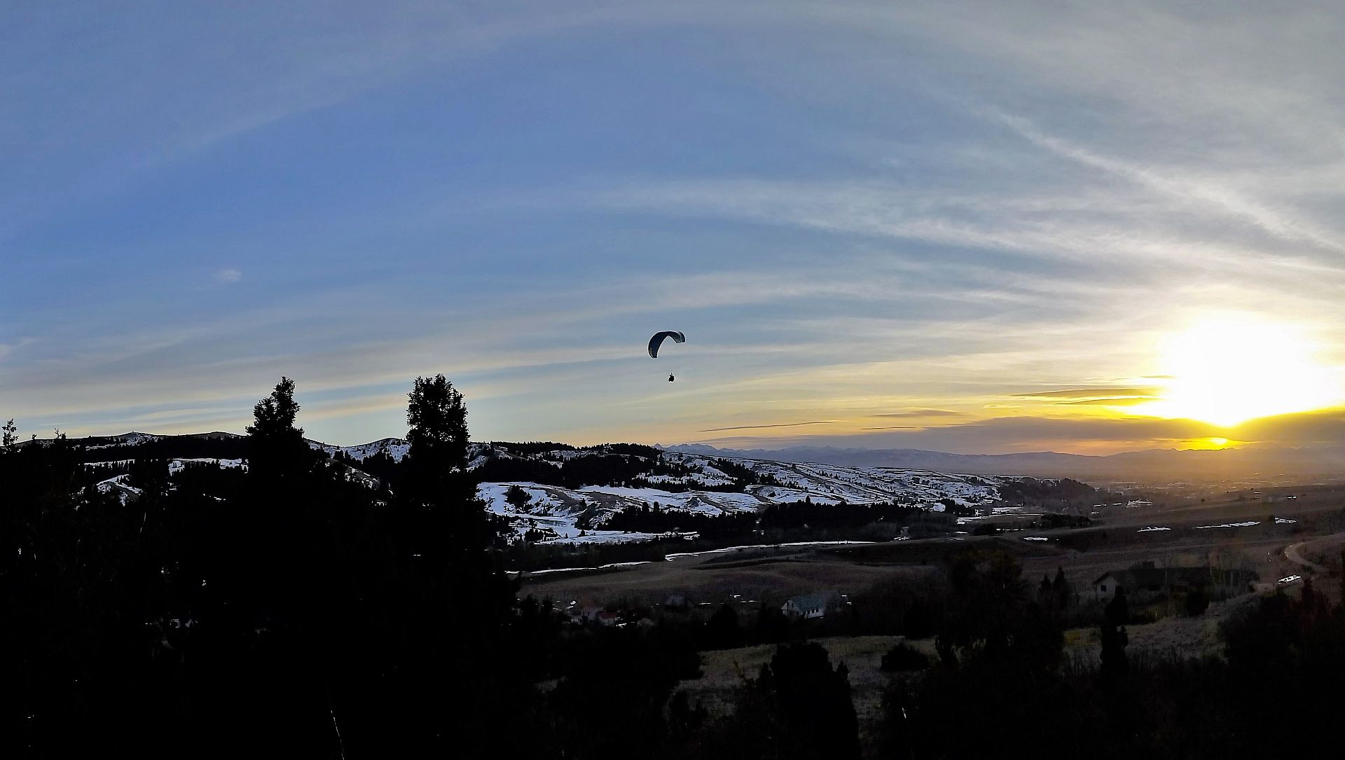 Last night I was battling the 40 hour work week with a trail run. Well … when I trail run it is more like a crippled old man stumble. Walking up and stumbling down with ouch-knee. A shadow moved across the ground in front of me causing me to look up. I hit the deck and rolled down the hill. The rest was a blur. Standing up in a midst of dust and trying to get the “device” from my pocket to take a picture. The person above was gliding on a thermal. And me … down there trying to cope with gravity.
