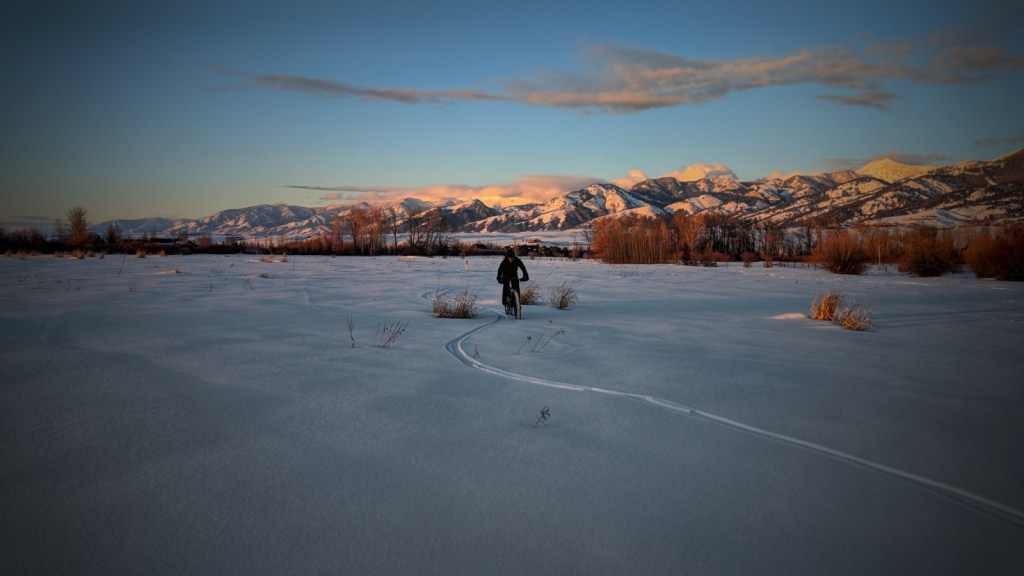 The man in black fled across the frozen valley, and the fatbiker followed.