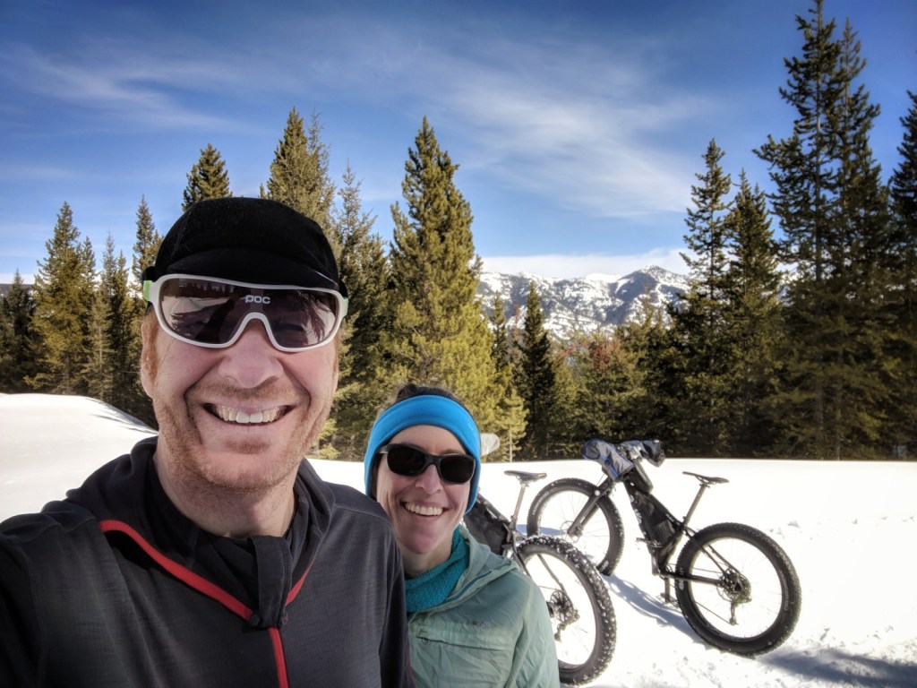 Then there’s this one frame that’s pure mystery—a lone set of animal tracks crossing the path. No bike, no person, just the silent whisper of some unseen creature’s passage. And just when you think it couldn’t get any more Instagram-worthy, boom! The grand finale: a selfie that captures the essence of the day, with two grinning souls and their trusty steel steeds, all set against a backdrop that could make a mountain goat weep with joy.