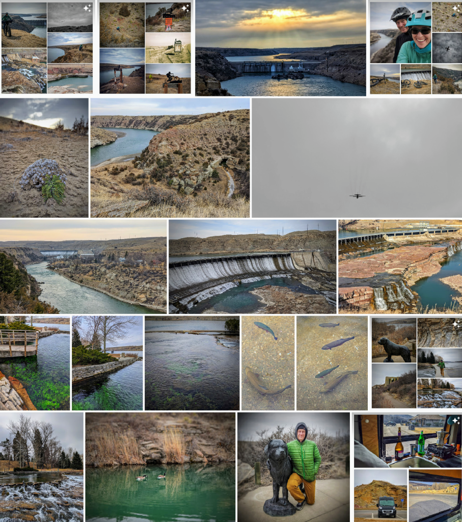 A lot of firsts were obtained during one of our last adventures. First overnighter in a rest area and Walmart parking lot. First mountain bike ride in Great Falls. First time seeing the falls … er … what is left of them. First time seeing a carp raise out of the water to watch you walk down the road. First big sunny day.