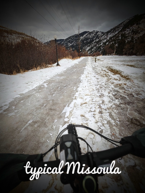 I’m trying my best to find a way to enjoy Missoula. Now that everything is covered in ice I have ordered studded tires. And studded sneakers. And now that I have studded tires, the weather has warmed up and now it’s just slushy. So when I buy a canoe, it will snow again. But at least I will have a fat bike and be prepared for that, right?