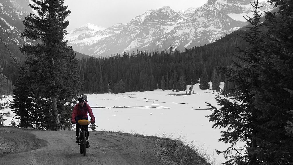 Some say spring is a glorious time. Others disagree because just as temps get into the 70s a huge snow storm and cold snap hit. Disappointed people wonder when summer will arrive. Me? I am not shocked when its cold out, even in summer. Snow is not un-expected as well. Maybe it is because I meet up with so much. Not from spring and summer storms. From encountering it out on an adventure. On hot and nice days I am not in town BBQ-ing and soaking up rays. No! I have bike packed out-of-town and climbed until I find snow. And diversity. I feel drawn to it. So when it is time to leave the road and push my bike through three feet of snow I am actually giddy.