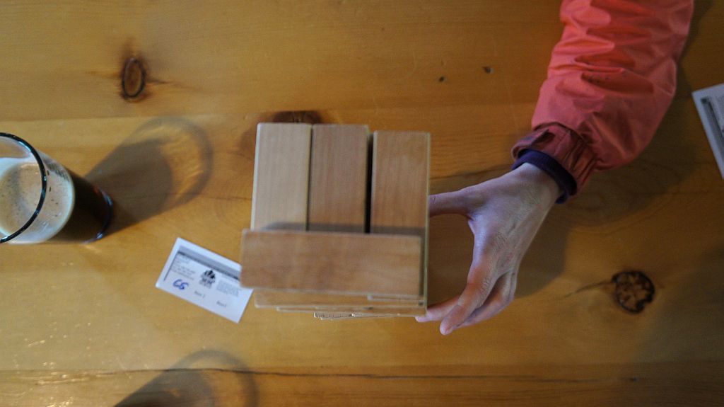 “The trick to jenga”, I explain to my opponent, “Is to get aggressive. And pay attention to which blocks will eventually un-weight other blocks.” And then as I take out my next block … FAIL.