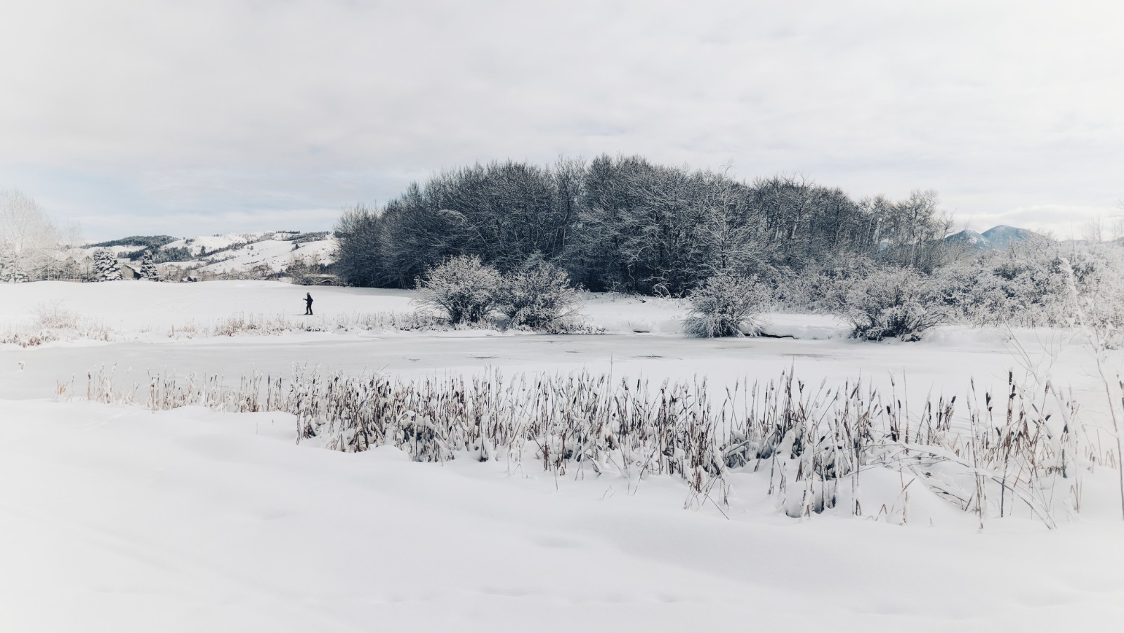 The valley was the culmination of all valleys, huge, standing to the sky for what looked like eternity in all directions. It was white, blinding, frozen, and without feature save for the small, rim of the mountains which drew themselves on the horizon. An occasional trail sign pointed the way, for once the drifted track that cut its way through the thick crust of snow had been a highway. Dog-walkers and hikers had followed it. This place had moved on since then. Everything emptied.