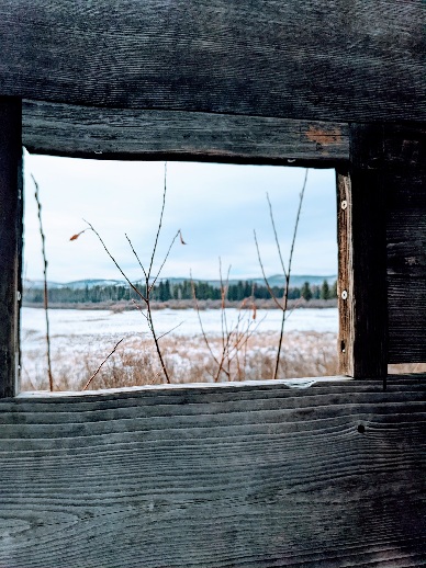 The snow-covered hill in the distance is a reminder of a winter that has passed. The wildfire smoke that fills the sky now obscures the view, but it cannot erase the memories of those cold, snowy days.