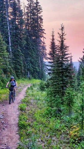 Mo on top of the Langohr climb with the sun setting in a dusk of color